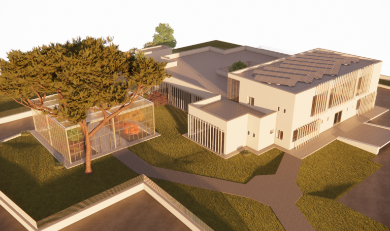 L’area oggetto di intervento è localizzata in Via Arena di Verona nella zona 167 del comune di Statte (Taranto). L’intervento nasce dall’esigenza dell’Amministrazione Comunale di valorizzare e migliorare urbanisticamente ed ambientalmente sia l’area in questione ( adiacente l’esistente Scuola Madre Teresa di Calcutta, attualmente versa in stato di abbandono) che le aree circostanti.L’ampliamento della scuola Madre Teresa di Calcutta ha, altresì, la finalità di ampliare l’offerta del servizio per i bambini della comunità locale, in quanto la scuola dell’infanzia rappresenta un collocamento necessario al processo di maturazione del bambino da un punto di vista non solo cognitivo ma anche sociale ed emotivo. E’ stato, quindi, fondamentale predisporre in modo consapevole occasioni in cui sia possibile favorire e migliorare tutto ciò, sin dal primo momento in cui il bambino entra a scuola. La scuola dell’infanzia è dedicata ai bambini da 3 a 6 anni e l’organizzazione didattica si basa su vari spazi che costituiscono lo spazio di riferimento dell’unità pedagogica. L’idea base è rivolta ad una composizione architettonica degli spazi tali da ottenere il massimo soleggiamento dei fronti esposti a sud secondo le indicazioni sul risparmio delle risorse energetiche, sperimentate dall’edilizia bioclimatica. Per queste ragioni l’edificio si articola in modo da dotare tutte le aule di affaccio soleggiato, consentendo nei mesi caldi, di graduare l’accesso dei raggi solari, grazie ad un’attenta definizione dell’involucro dotato di schermature mobili ed orientabili. L’edificio è classificato nZEB. Tutta la progettazione è stata svolta in ambiente B.I.M.