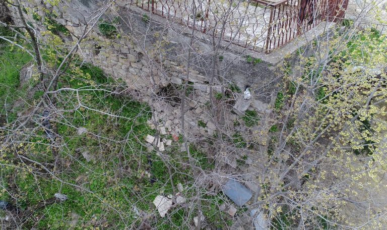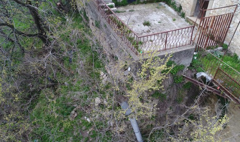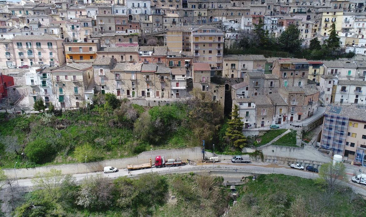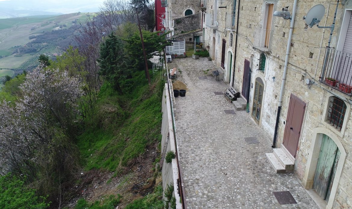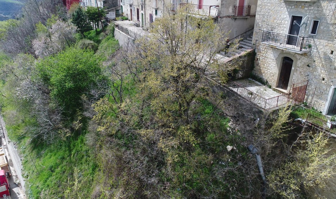 Al fine di stabilizzare il fronte di dissesto che interessa la pubblica area, costituita da un terrazzo con struttura in muratura indipendente dagli edifici limitrofi sono stati progettati i seguenti interventi:
