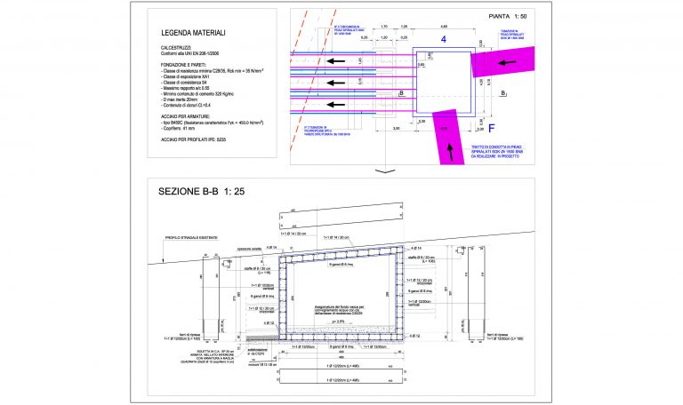 posa in opera della fogna con tubazione in c.a. di diametro Ø 800 mm interamente inglobata nel conglomerato cementizio;