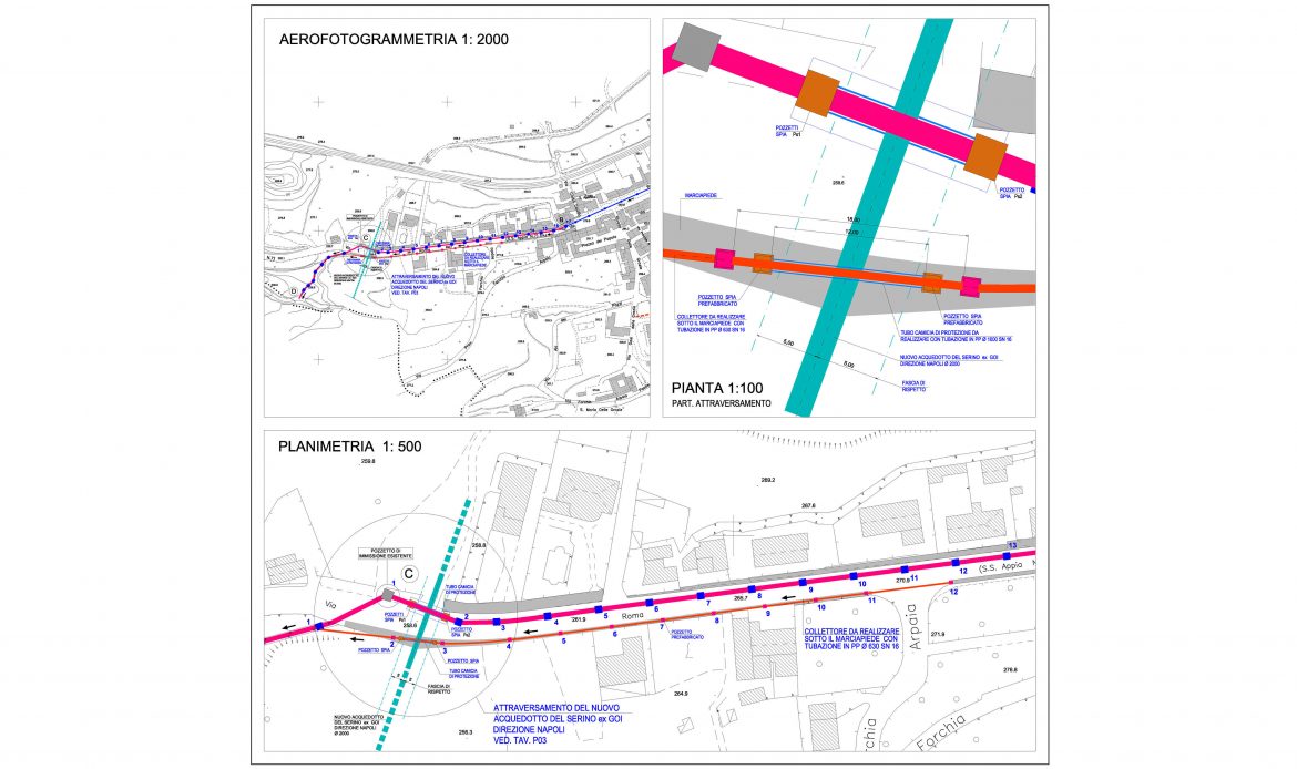 Nel redigere il progetto è stato individuato dapprima il tracciato dei vari tratti di fogna dal punto di vista planimetrico ed in seguito si è proceduto all’ individuazione dal punto di vista altimetrico. Il tracciato delle fogne è stato scelto in modo da realizzare una rete capace di soddisfare l’esigenza di uno smaltimento delle acque in tempi brevi e nel modo più razionale possibile, inoltre viene potenziato il servizio fognario in corrispondenza delle aree produttive poste lungo la via Appia.