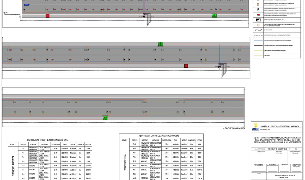 Per quanto riguarda gli impianti speciali, è stata prevista la sostituzione dei cartelli luminosi, delle telecamere e della stazione di emergenza (SOS) nelle immediate vicinanze dell’area di intervento.