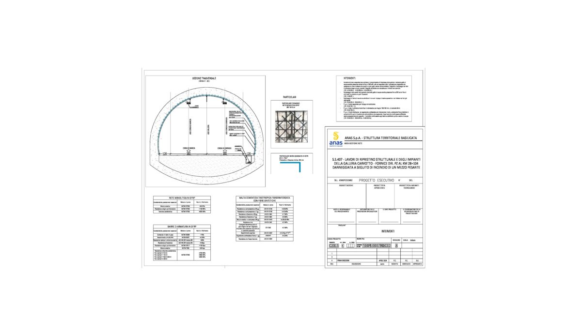 S.S. 407 – Lavori di ripristino strutturale e degli impianti della Galleria Carvotto – Fornice Dir. PZ al Km 28+104 danneggiati a seguito di incendio di un mezzo pesante