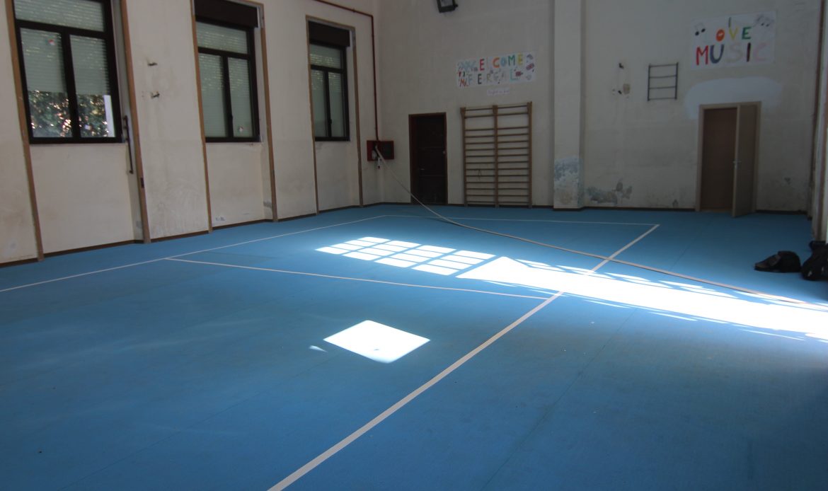 Interventi di ristrutturazione palestra: pavimento, adeguamento servizi igienici-infissi interni.